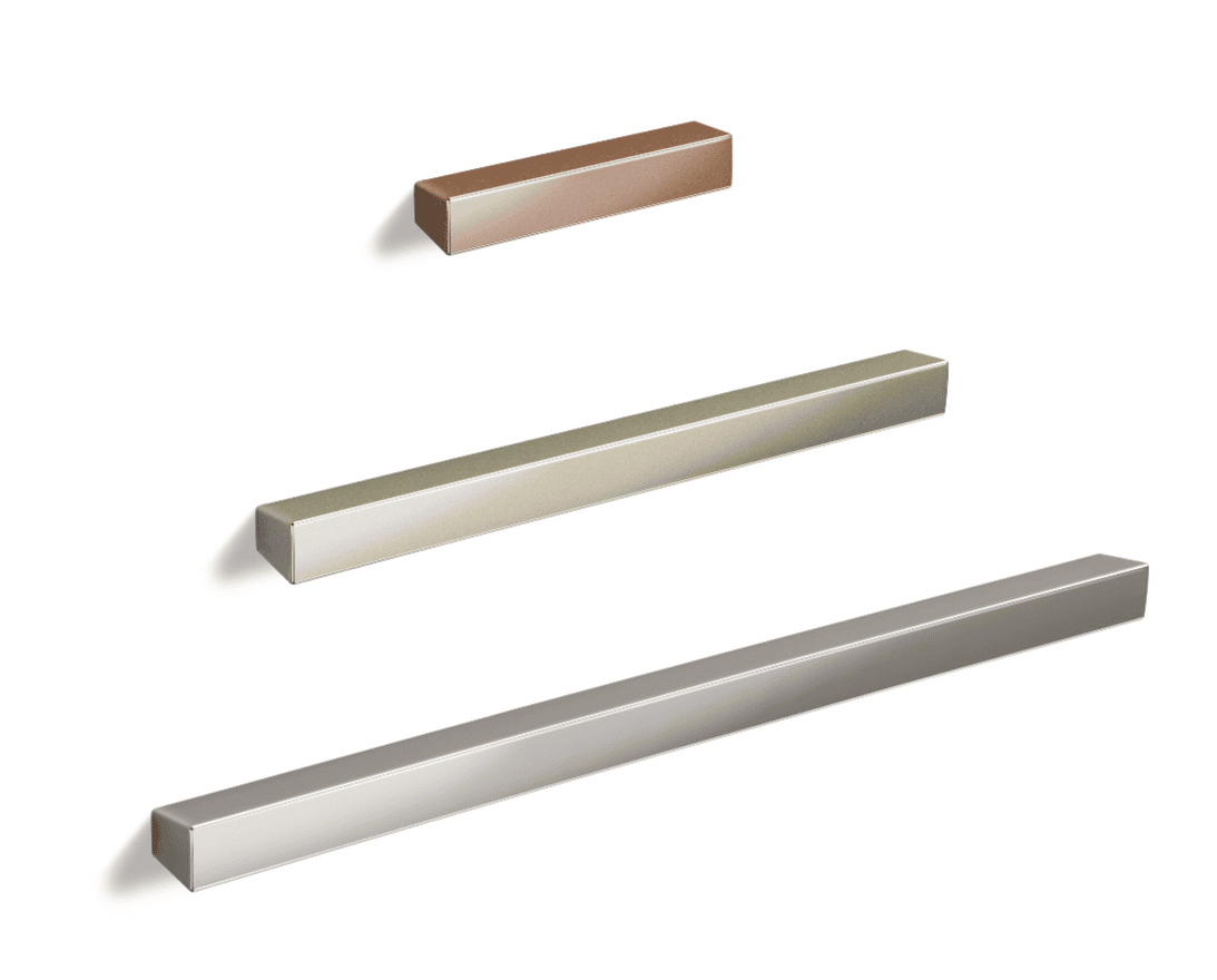 Le maniglie 341 sono composte da due elementi che possono essere realizzati in finiture diverse, offrendo così ai designer ampia libertà creativa.